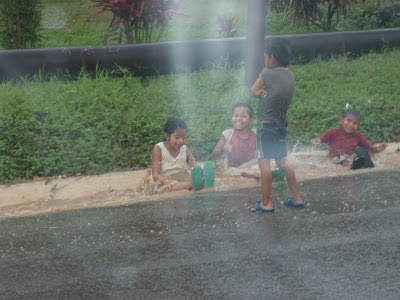 Kids are kids everywhere. Love playing in the rain.